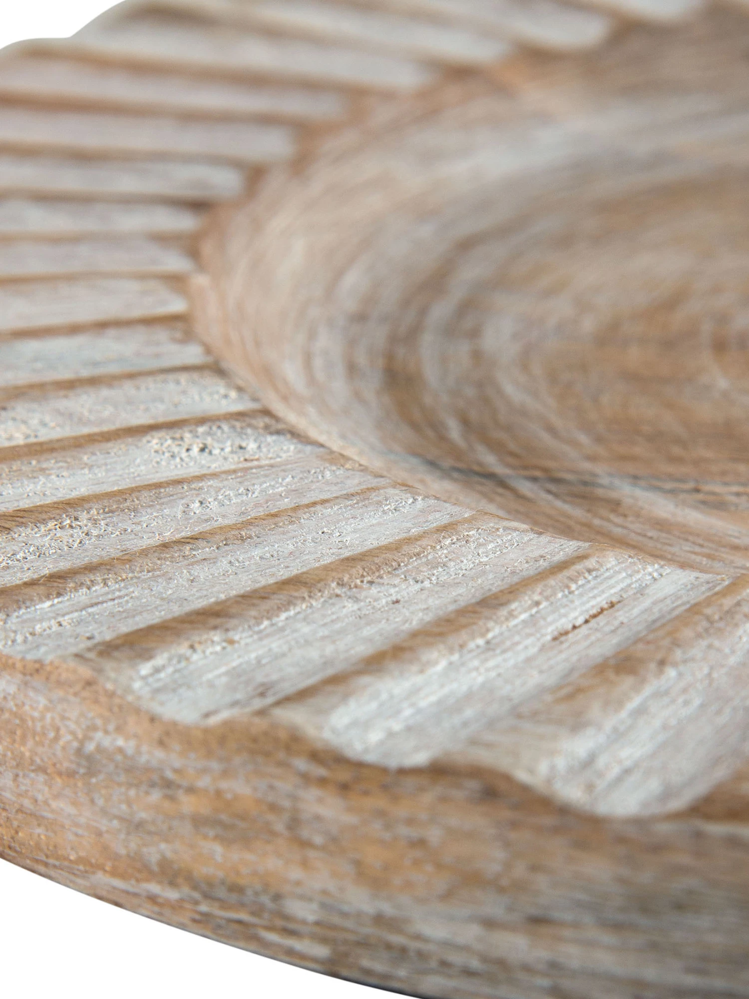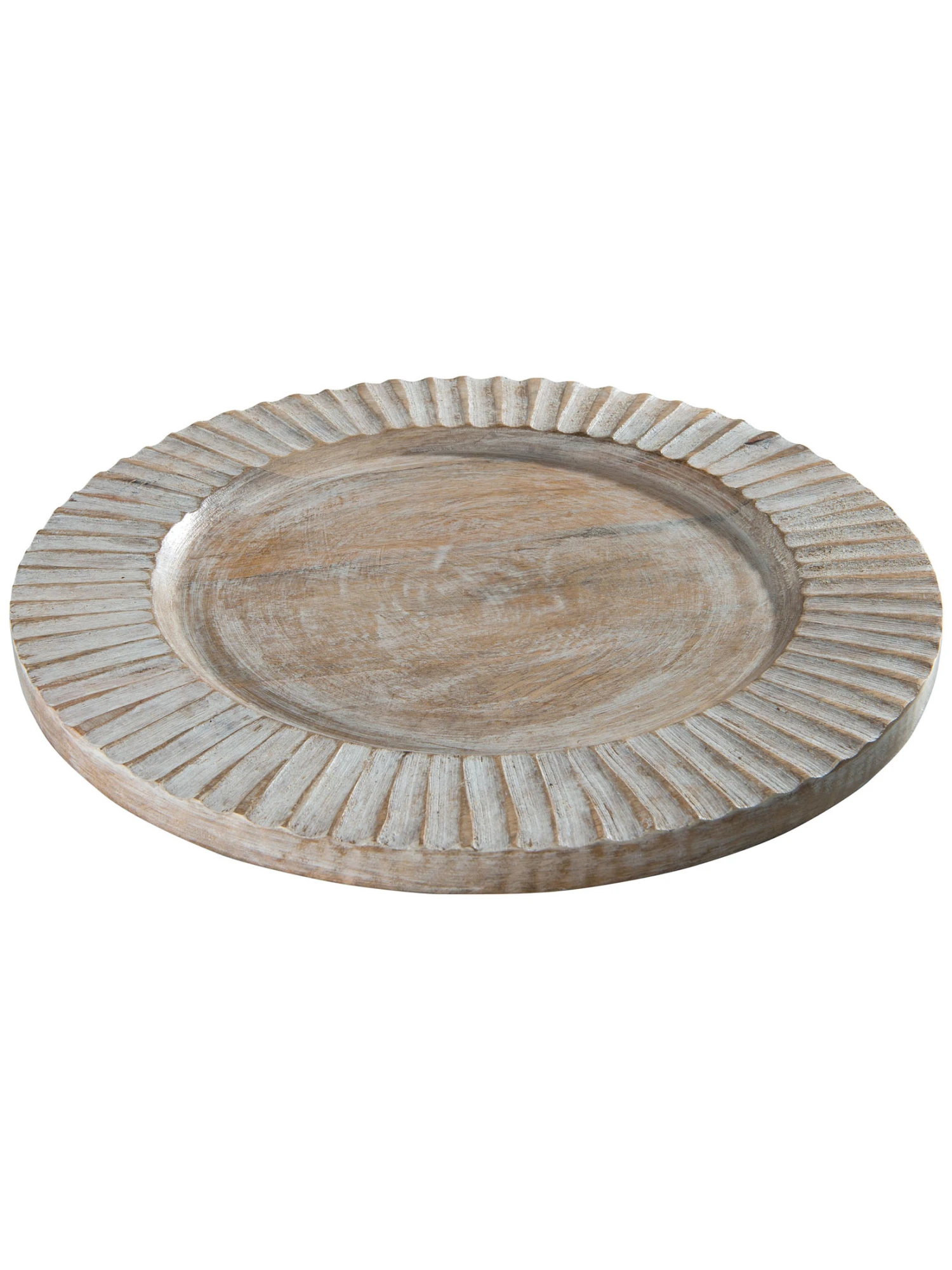 Deko-Teller aus Mangoholz. Die weiße Lasierung gibt dem Teller einen attraktiven Vintage-Look.