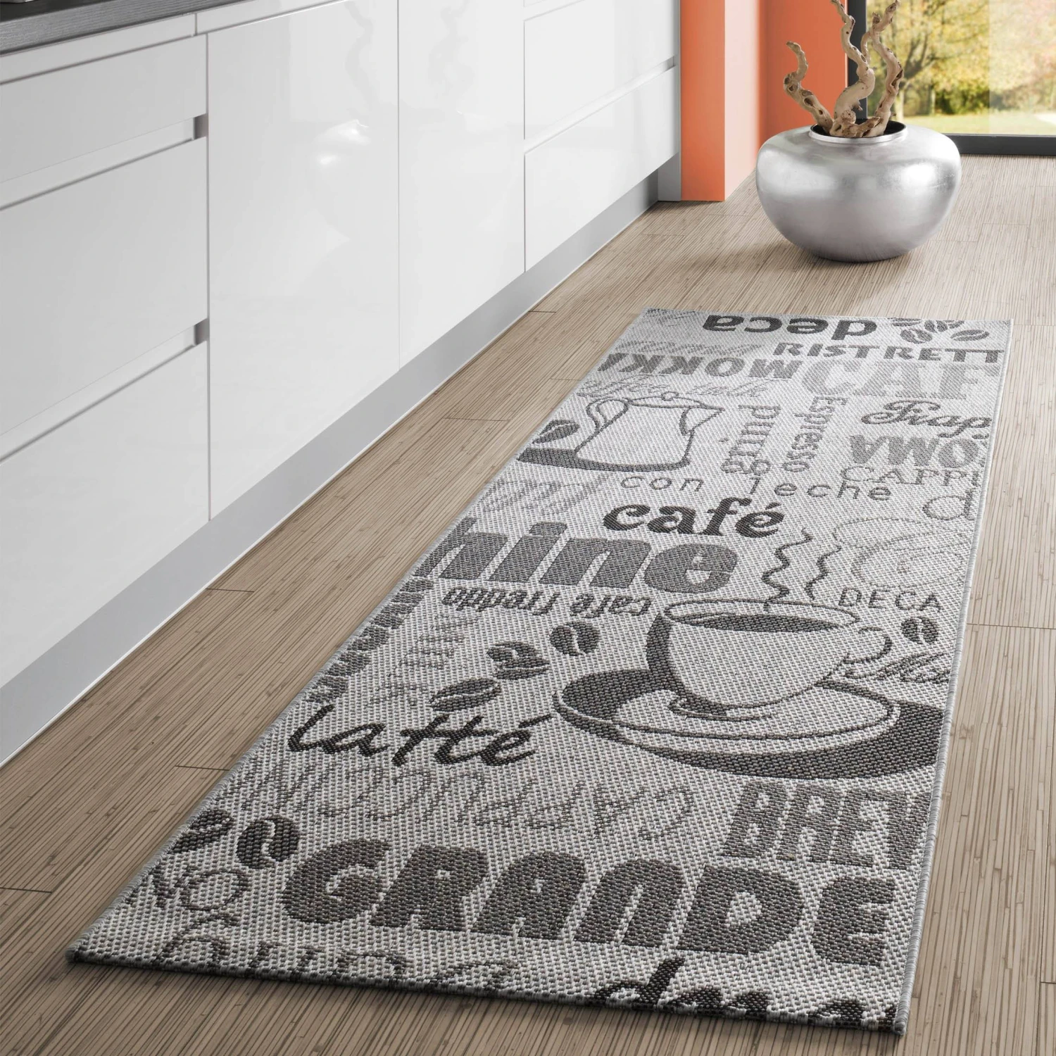 Küchenläufer im angesagten Landhaus-Stil. Robustes Flachgewebe. Extrem strapazierfähig und leicht sauber zu halten. Flormaterial 100 % Polypropylen. Wenn der Teppich nicht mehr als 50 % des Fußbodens eines Raumes bedeckt, ist er für Fußbodenheizung geeignet. Schadstoffgeprüft.
