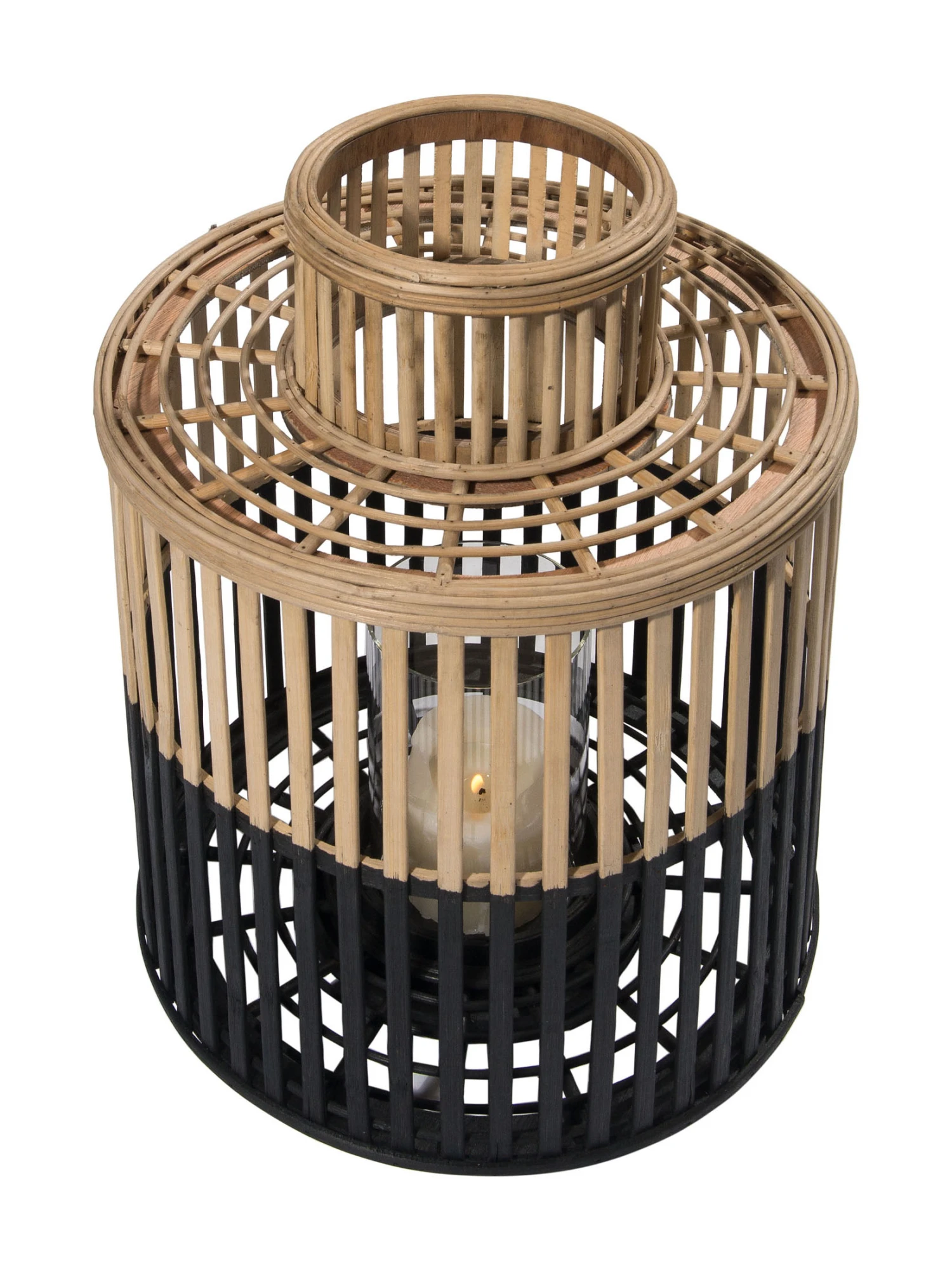 Moderne Laterne aus Bambus. Mit Glaseinsatz. Perfekt zur stimmungsvollen Beleuchtung drinnen und draußen. FARGOSA ist für viele Wohnstile geeignet.