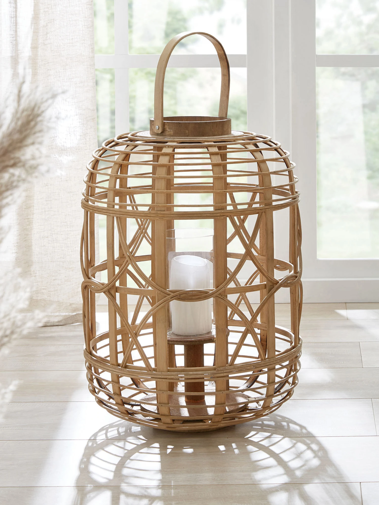 Diese Bambus-Laterne macht eine gute Figur auf Ihrem Balkon oder Ihrer Terrasse. Mit Glaseinsatz.