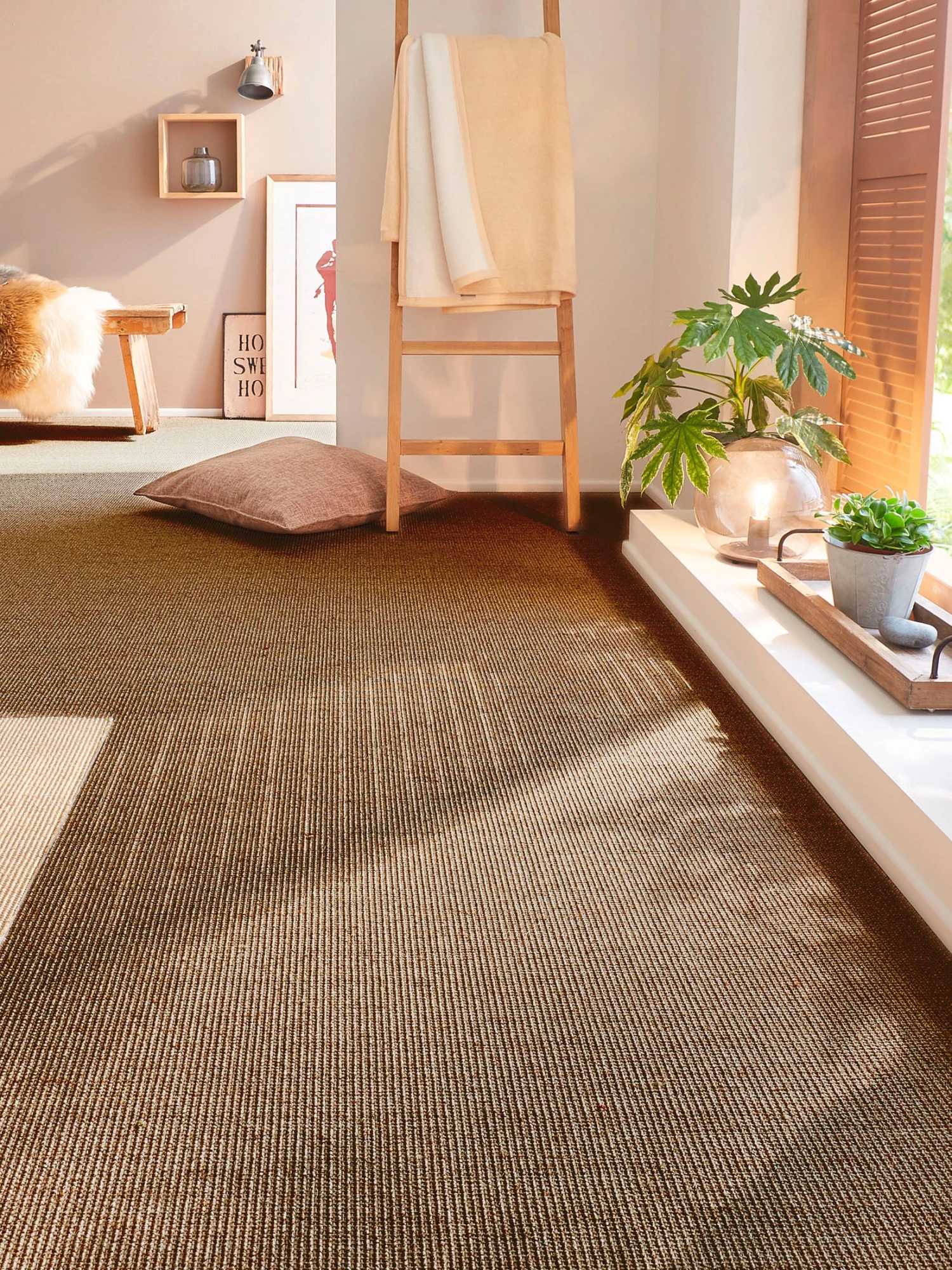 Hochwertiger Naturfaser-Teppichboden in klassischer Bouclé-Optik, hergestellt aus der sehr widerstandsfähigen Faser der Agavenpflanze. Der Einsatz dieses nachwachsenden Rohstoffes verleiht diesem Bodenbelag seine unverwechselbare natürliche Erscheinung. Preise pro m². Flor 100 % Sisal.