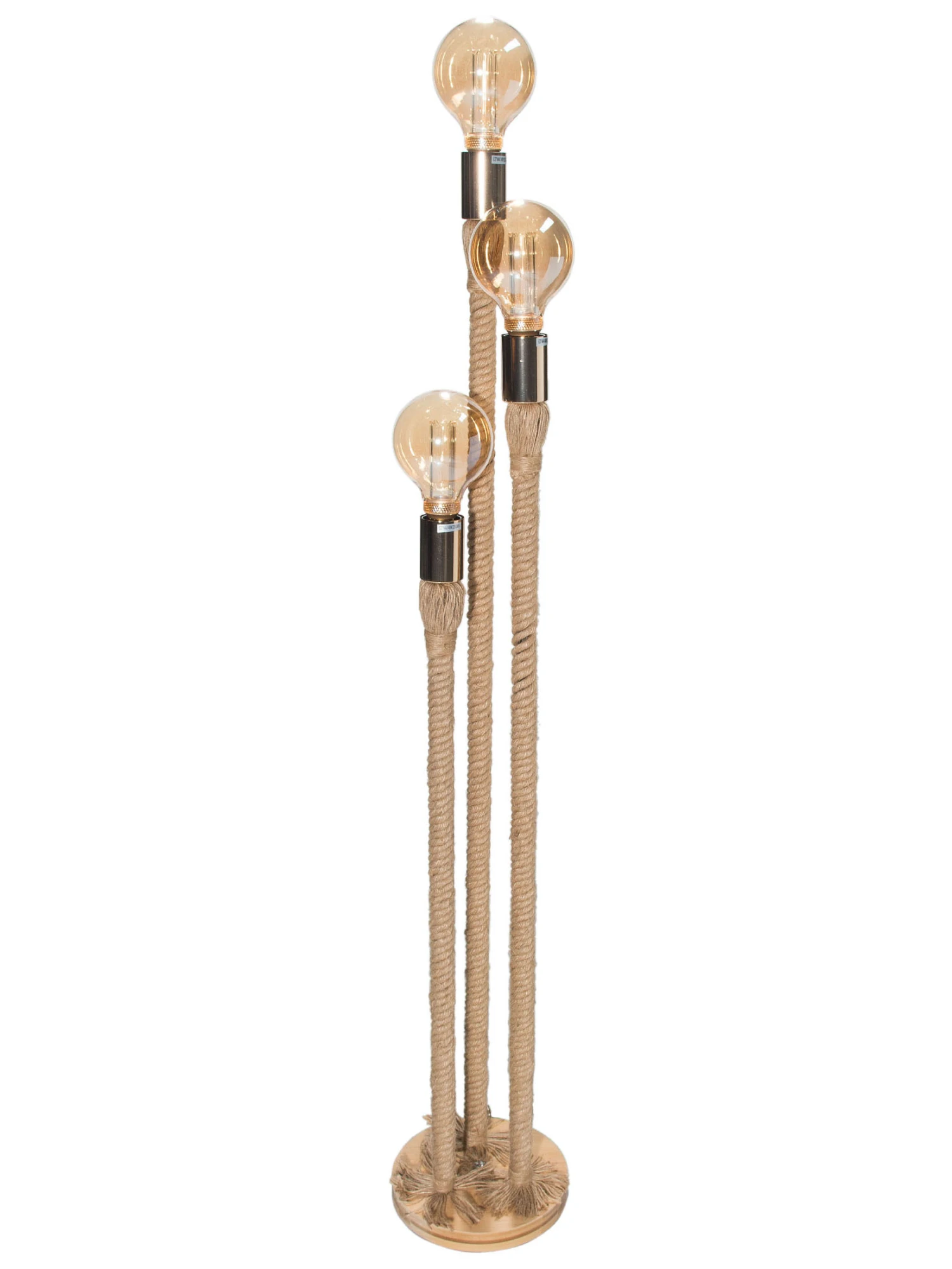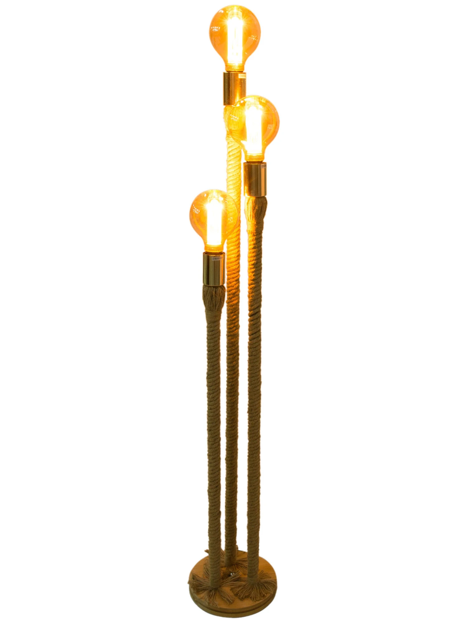 Bei PROA werden Metallstangen mit Hanfseil umwickelt. Die Standleuchte wird ohne Leuchtmittel E 27, 40 W geliefert. So kann man durch speziell gewählte Leuchtmittel seine individuelle Lampe gestalten. Die Gesamthöhe exkl. Leuchtmittel ist ca. 113 cm.